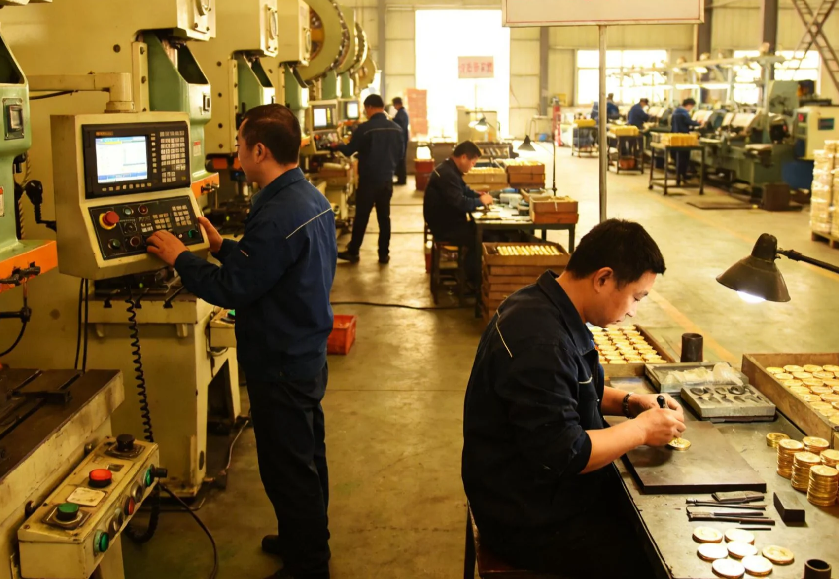Our modern factory covers an area of 1,500 square meters and is equipped with 42 sets of advanced production machines, including stamping, die-casting, polishing, coloring, and electroplating equipment.